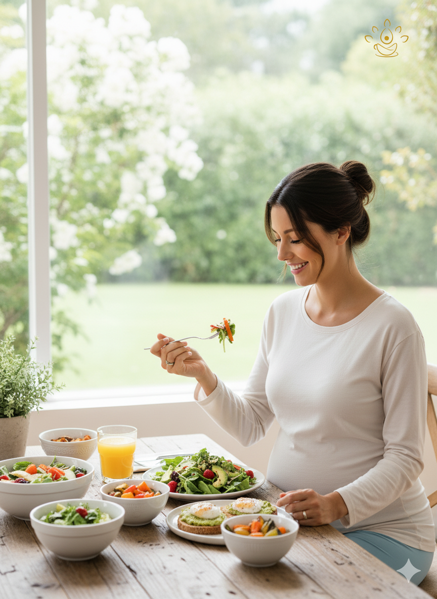 Food is considered medicine in Garbh Sanskar. A sattvic diet—fresh, organic, light, and nourishing—is recommended, including milk, ghee, rice, fruits, green vegetables, and pulses. This type of nutrition sustains maternal health, supports fetal growth, and enhances production of breast milk. The diet must be sweet, cooling, easily digestible, and rich in calcium, folic acid, and iron.
