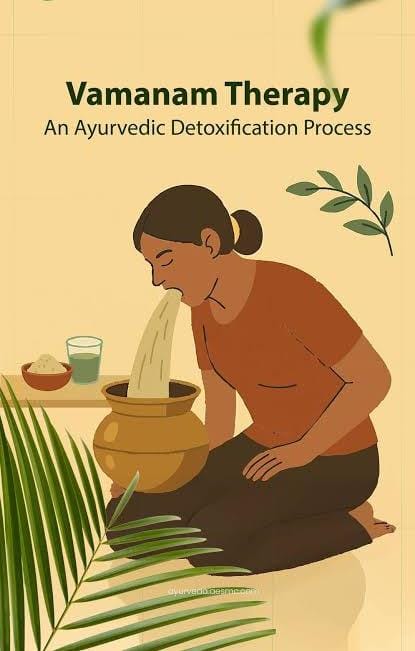 Vaman involves the administration of emetic medicines to expel vitiated Kapha dosha from all body channels at cellular level via stomach. It is useful for respiratory disorders, skin diseases, and metabolic conditions where Kapha accumulation is predominant like Diabetes Hypothyroidism etc.